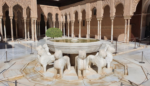 La Alhambra un conjunto de antiguos palacios, jardines y fortaleza. El complejo monumental de la ciudad palatina andalusí en Granada. Concebido para alojar al emir y la corte del Reino nazarí, más tarde fue residencia real castellana y de sus representantes. Destacan los palacios nazaríes.